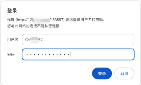 4.打开浏览器,会自动弹出需要输入用户名和密码的窗口,用户名即填写AuthKey,密码填写AuthPwd;